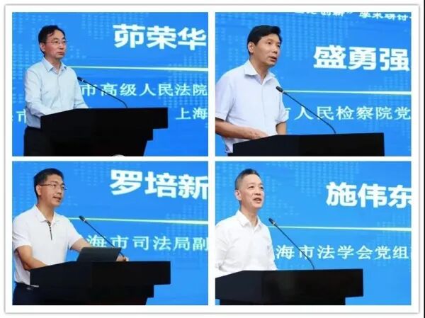 上海市高级人民法院党组副书记、副院长、上海市法学会民法学研究会会长茆荣华向参加本次研讨会的专家学者表示诚挚感谢。他以“肩负起民法人的时代使命”为主题进行演讲,并提出了对民法人的三点期待:第一,民法人要做研究民法典的积极参与者;第二,民法人要做实施民法典的积极实践者;第三,民法人要做完善发展民法典的积极推动者。上海市人民检察院党组副书记、副检察长盛勇强指出,带头学习、宣传、研究民法典,保障民法典不折不扣落到实处,是每一个法律人的责任,检察机关肩负着不断丰富民事司法实践经验、推动民事法律实施水平显著进步、推动民法理论研究达到更高水平、推动全社会民事法治观念普遍增强等四个使命。上海市司法局副局长罗培新教授从世界银行营商环境评估标准的角度对民法典进行了解析。他从上海提交给中央的优化营商环境的典型案例“优化营商环境法治保障共同体”出发,指出营商环境价值观、方法论与民法典具有高度融合的特点。上海市法学会党组副书记、专职副会长施伟东提出,要正确认识当前宣传民法典的职责任务,期待上海法律界在民法典研究中产出更多的学术成果。