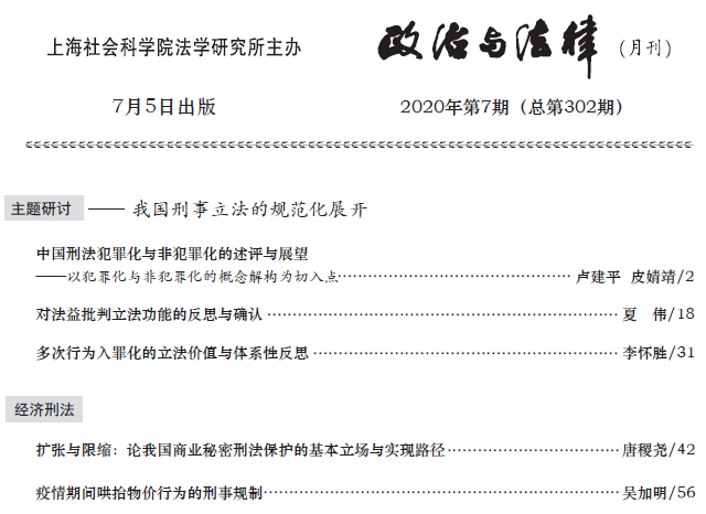 摘要:所谓“法益理论危机”不过是法益论与规范论之争的另一种延续。法益标签化的现象表明,刑法中的规范论从未真正退场,而是以变换概念的方式潜藏在法益论之中,并以法益论的名义传播“刑法是通过维护规范效力来实现法益保护”的规范论命题,其根本目的是为了在法益论的语境下实现规范论的复兴。将对法益的保护代换为对规范效力的维护,并据此否定法益批判立法的功能,是对法益论的根本性误解。刑法中的法益具有批判立法的功能,它不仅在前实定法意义上为犯罪化立法的正当性判断提供指导,还在实定法意义上确定了可罚性的限定标准,并据以甄别行为之合法与不法。确立法益批判立法的功能,对于正确认识法益论和规范论的本质差异以及防止法益概念的标签化具有重要意义。