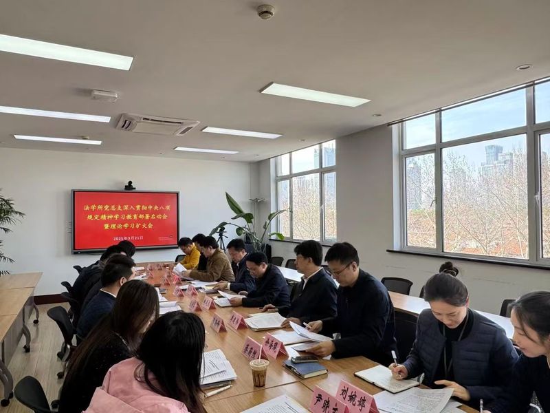 3月21日下午,法学所党总支在432会议室召开深入贯彻中央八项规定精神学习教育部署启动会暨理论学习扩大会,传达学习中央、市委,以及院党委关于深入贯彻中央八项规定精神学习教育的会议和文件精神,对全所学习教育工作进行部署。院党委副书记、法学所党总支书记、所长姚建龙主持会议并讲话,所领导班子、两委委员、党员代表参加会议。