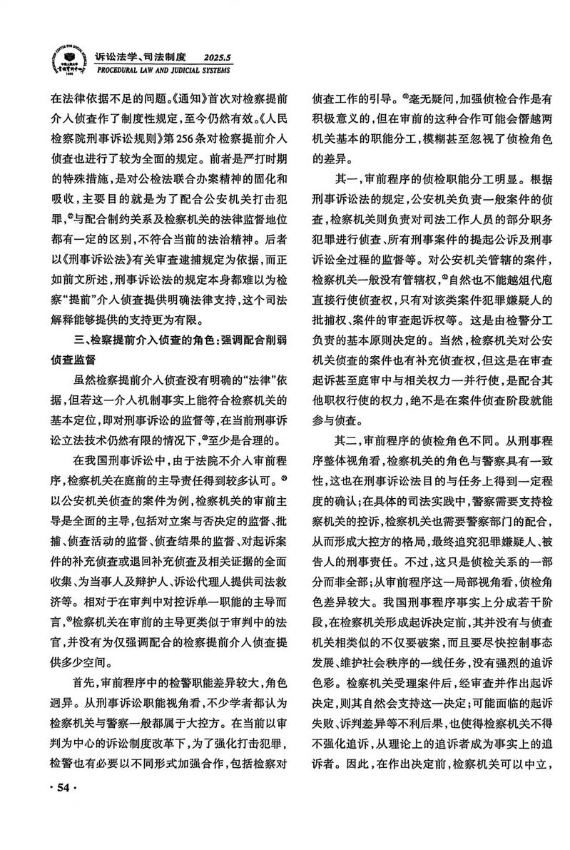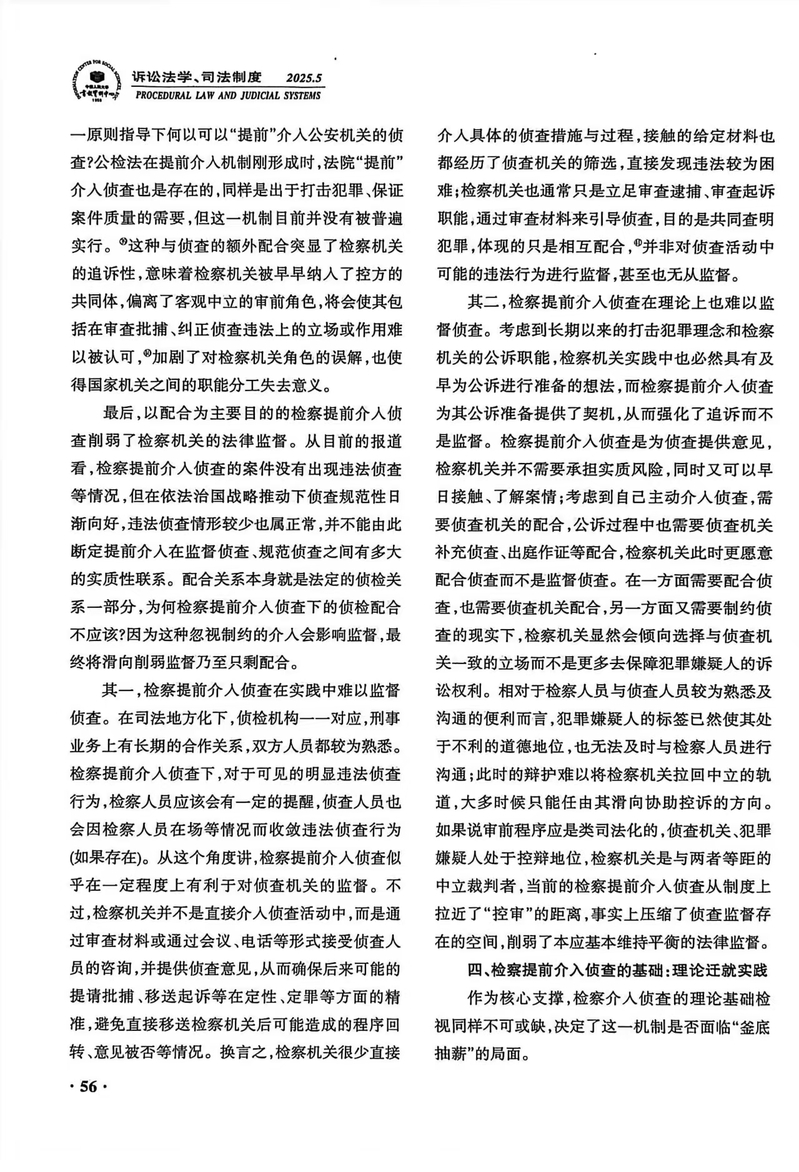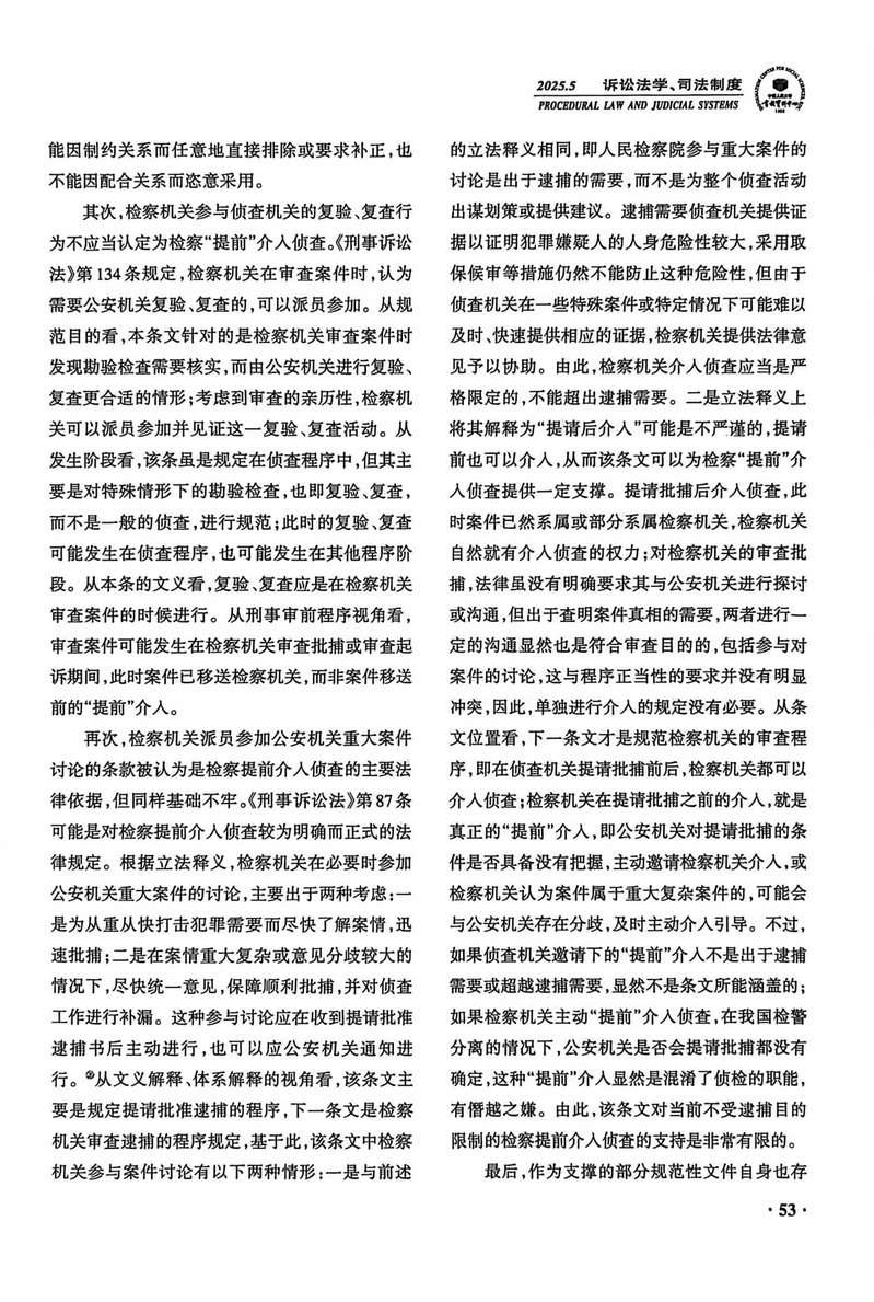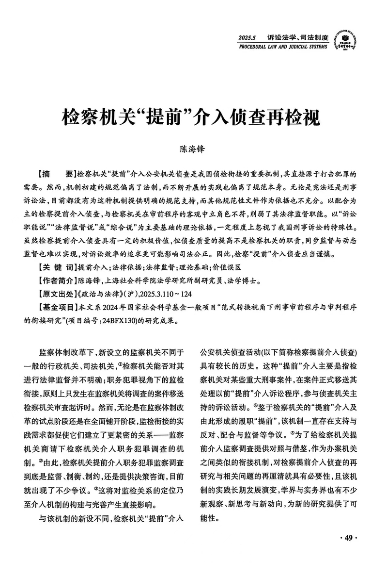 【学术研究】陈海锋:《检察机关“提前”介入侦查再检视》获《人大复印报刊资料·诉讼法学、司法制度》2025年第5期转载