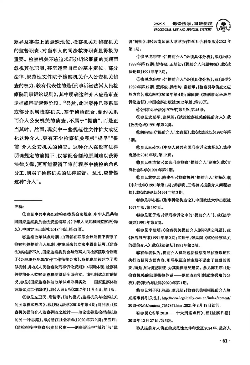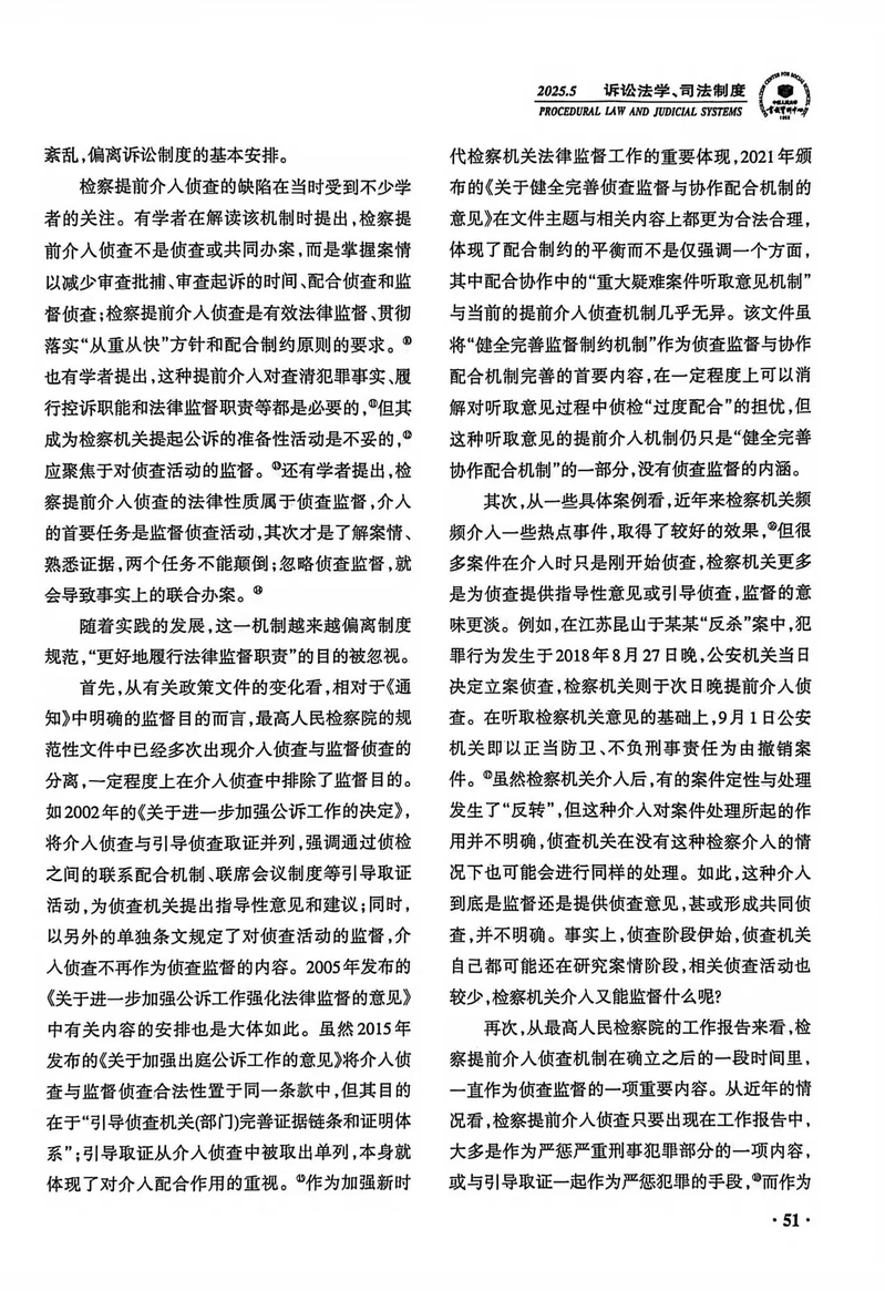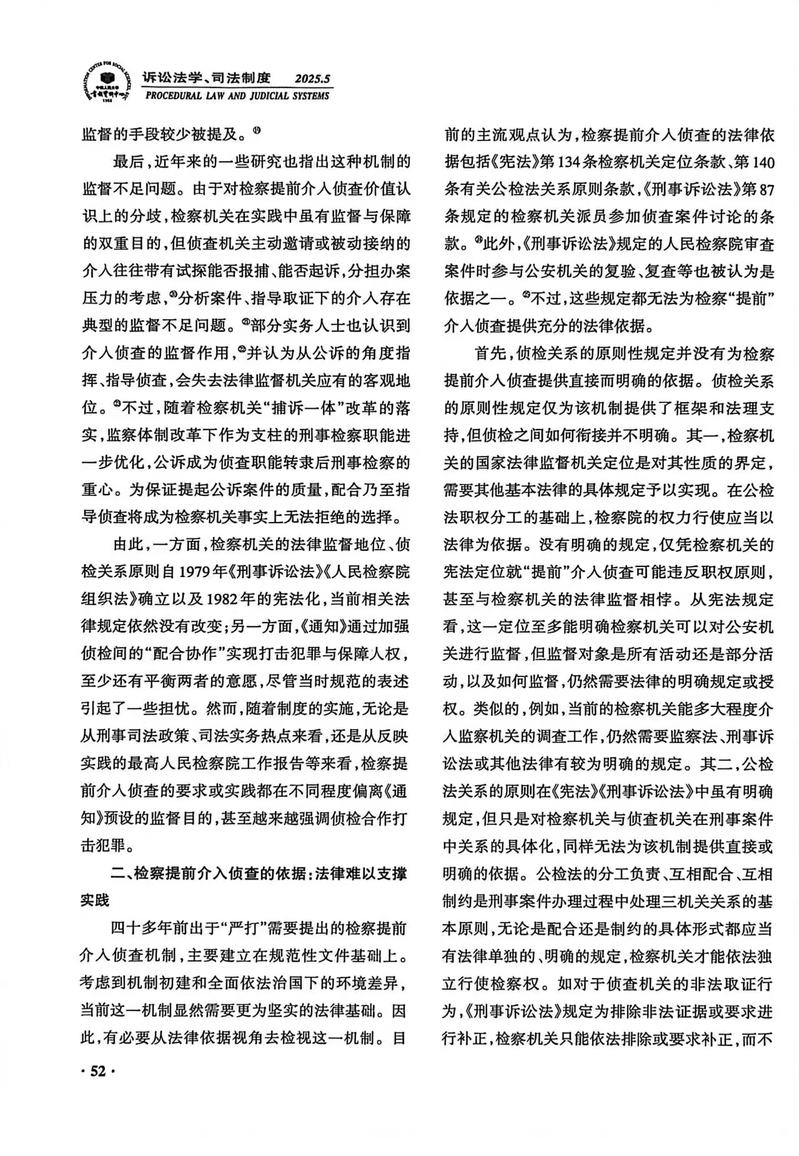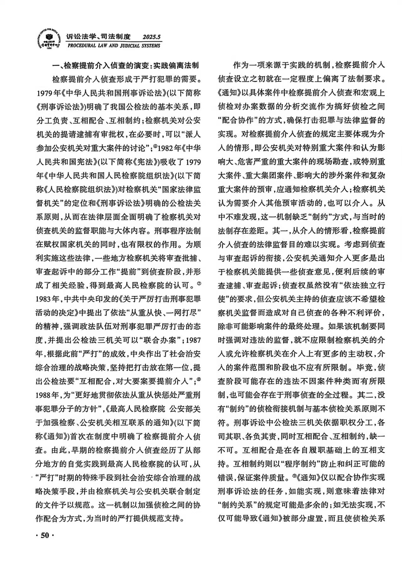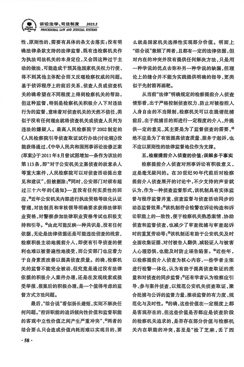 【学术研究】陈海锋:《检察机关“提前”介入侦查再检视》获《人大复印报刊资料·诉讼法学、司法制度》2025年第5期转载