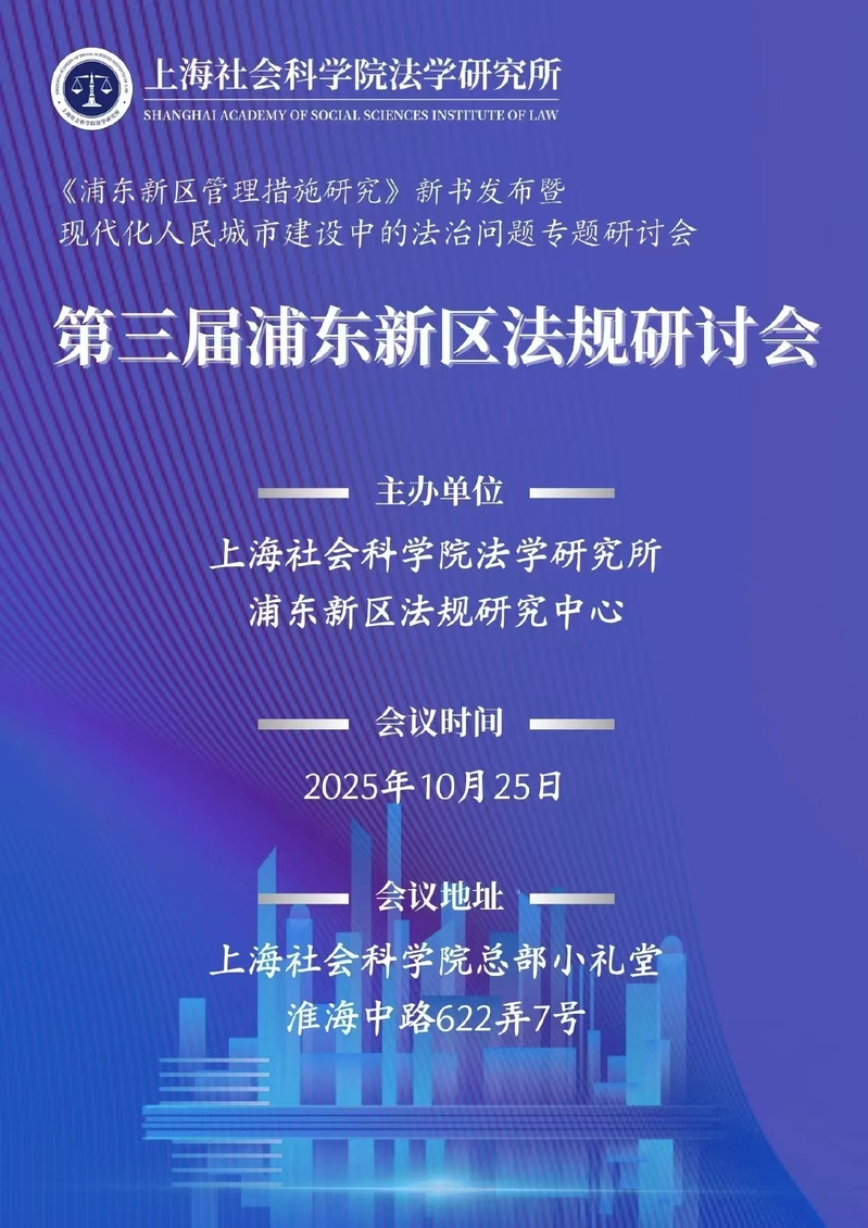 【活动预告】《浦东新区管理措施研究》新书发布暨现代化人民城市建设中的法治问题专题研讨会