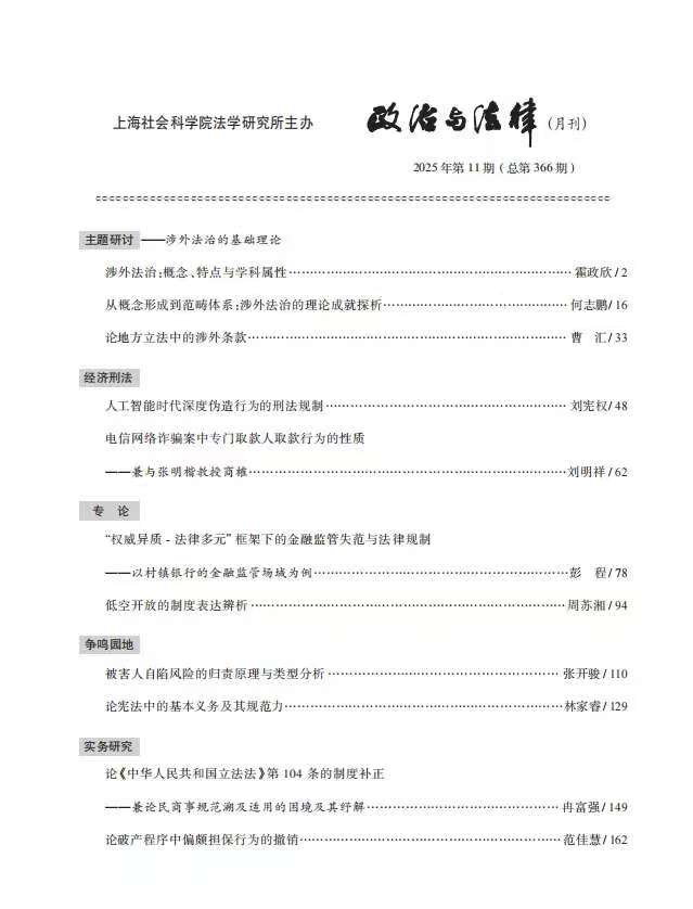 作者:曹汇(上海社会科学院法学研究所助理研究员、法学博士)