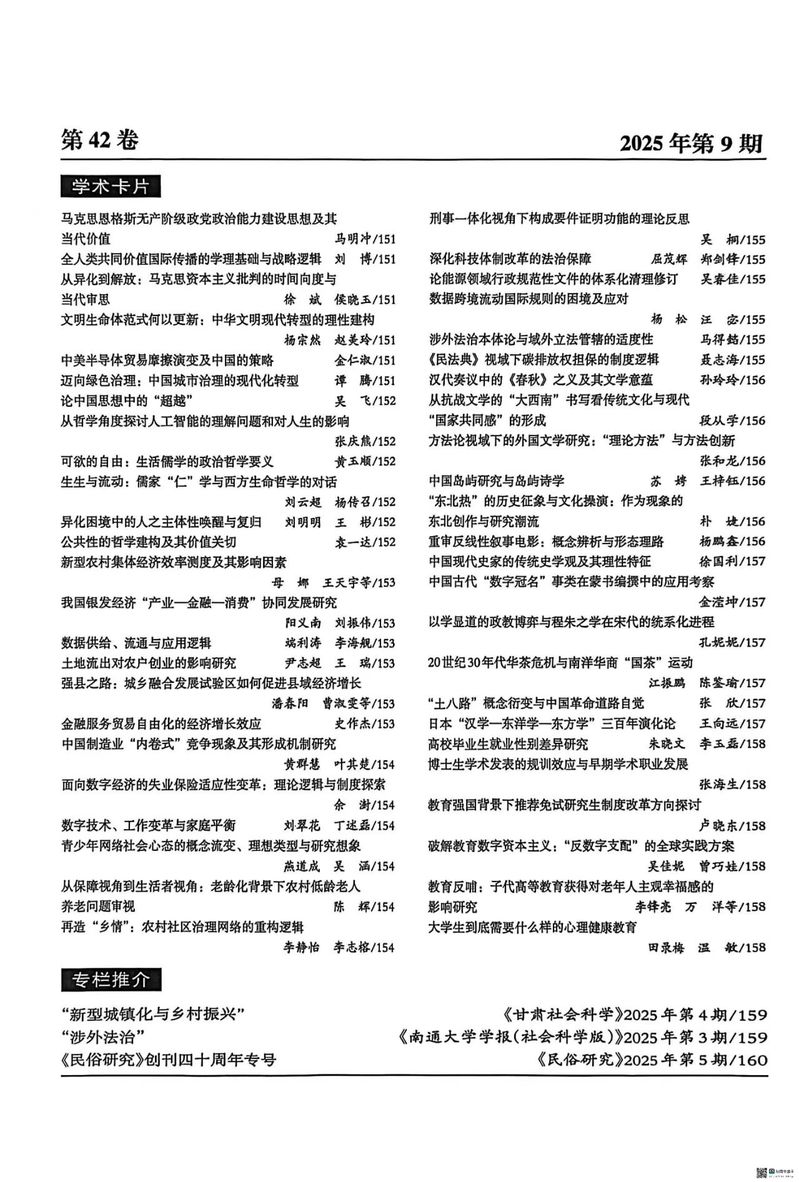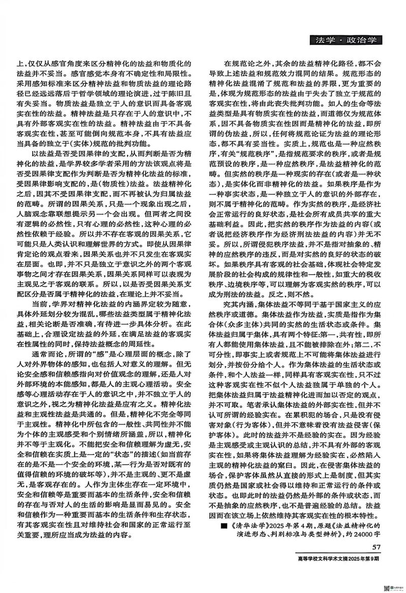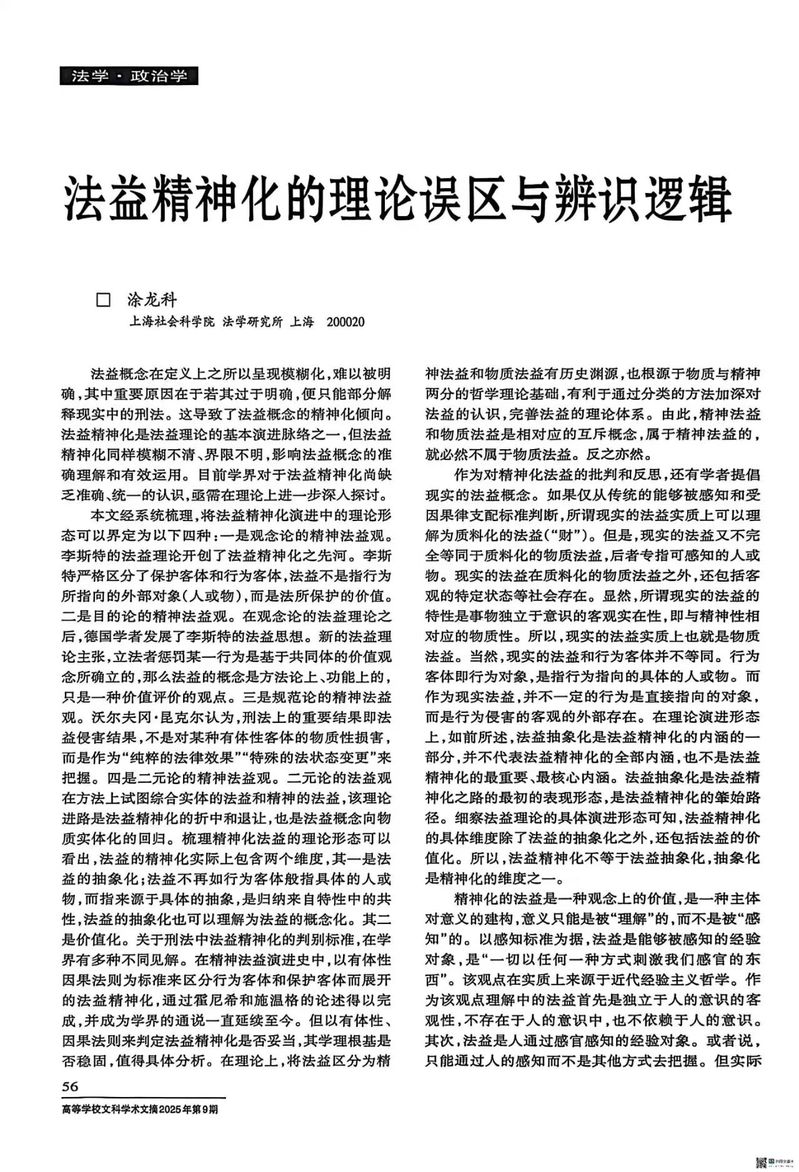 【学术研究】涂龙科:《法益精神化的理论误区与辨识逻辑》获《高等学校文科学术文摘》2025年第9期转载