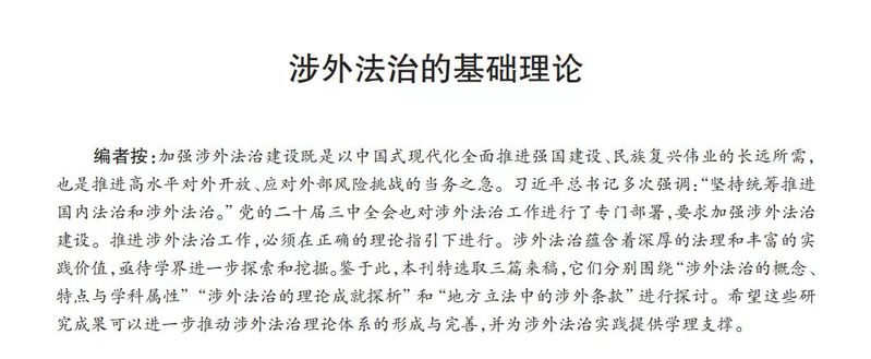 来源:《政治与法律》2025年第11期“主题研讨——涉外法治的基础理论”栏目。因篇幅较长,已略去原文注释。