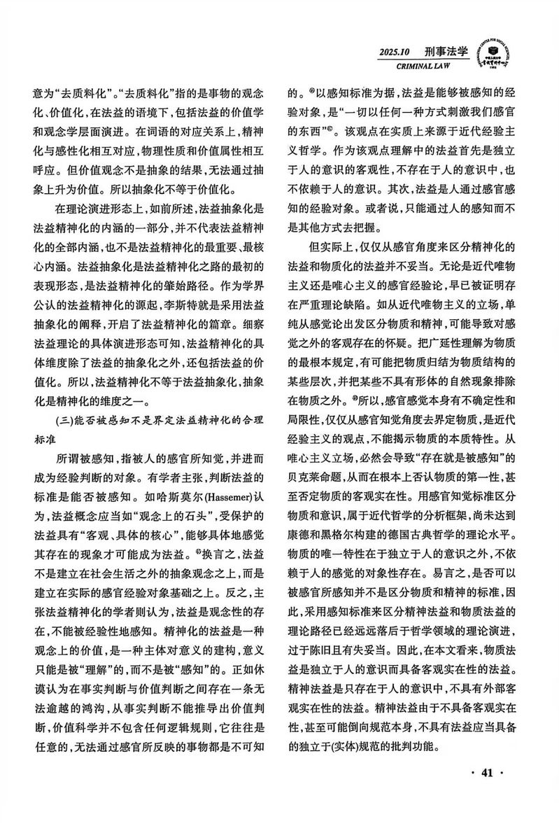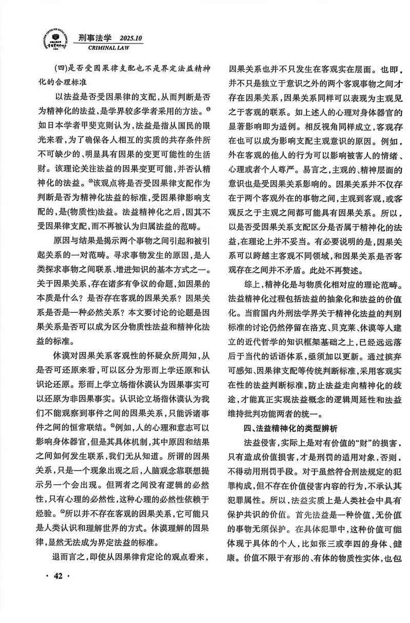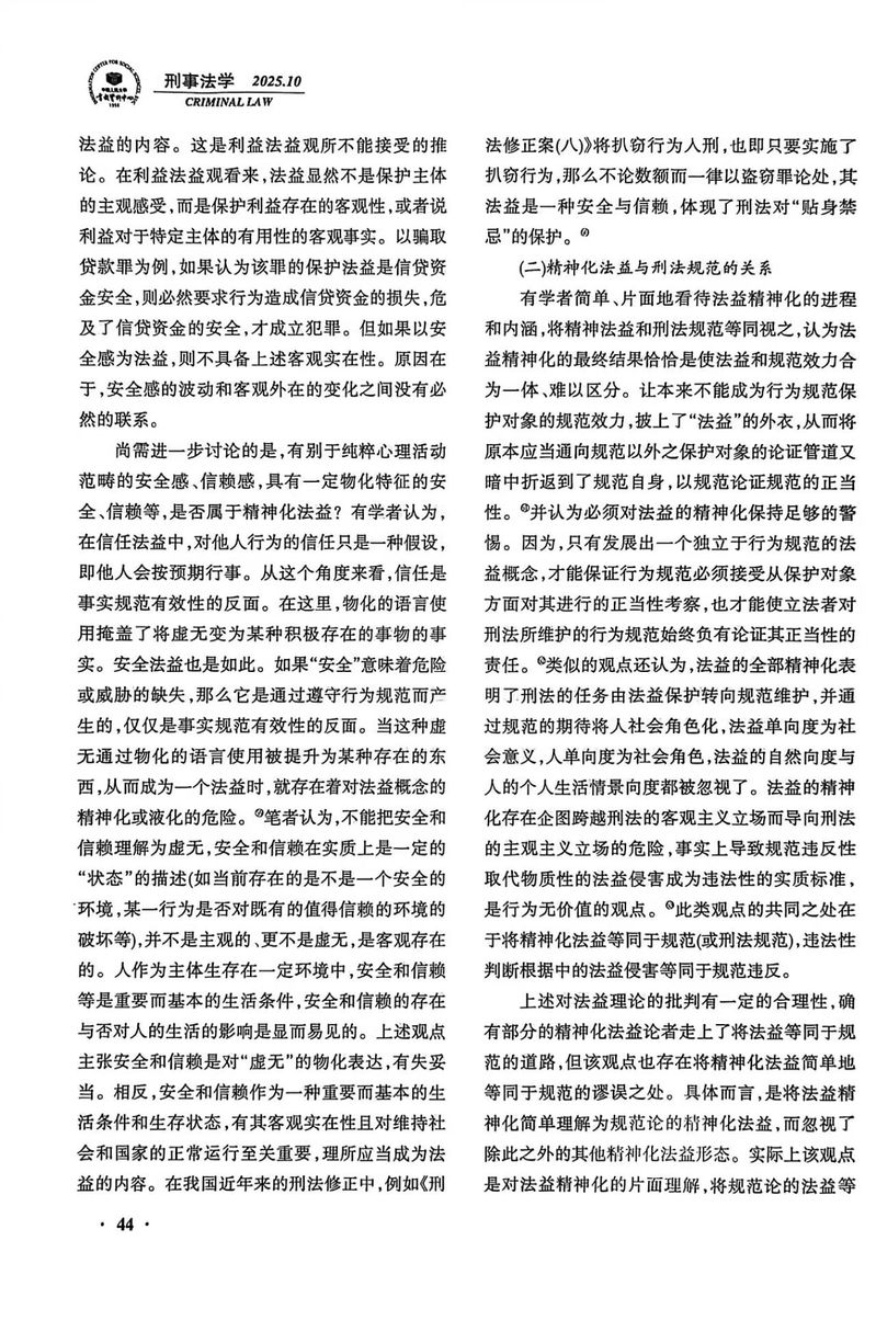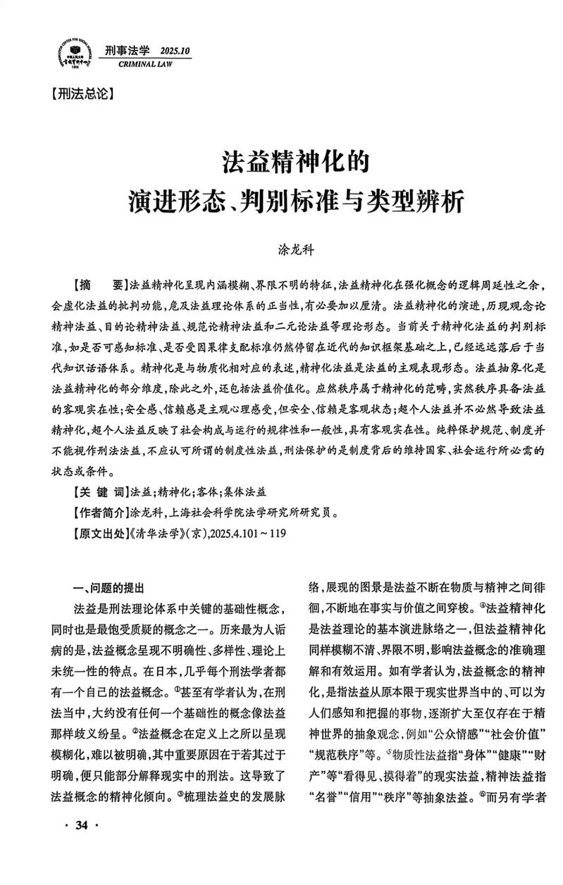 【学术研究】涂龙科:《法益精神化的演进形态、判别标准与类型辨析》获《人大复印报刊资料·刑事法学》2025年第10期转载