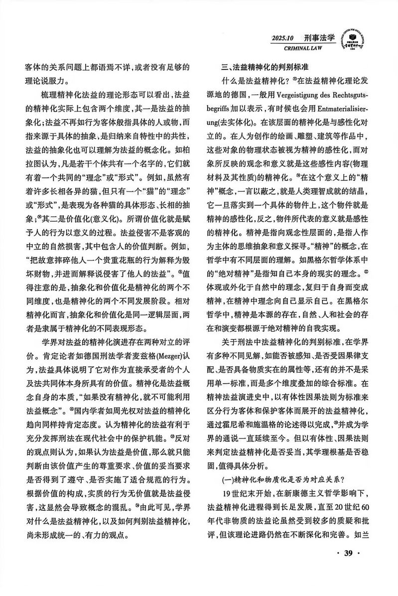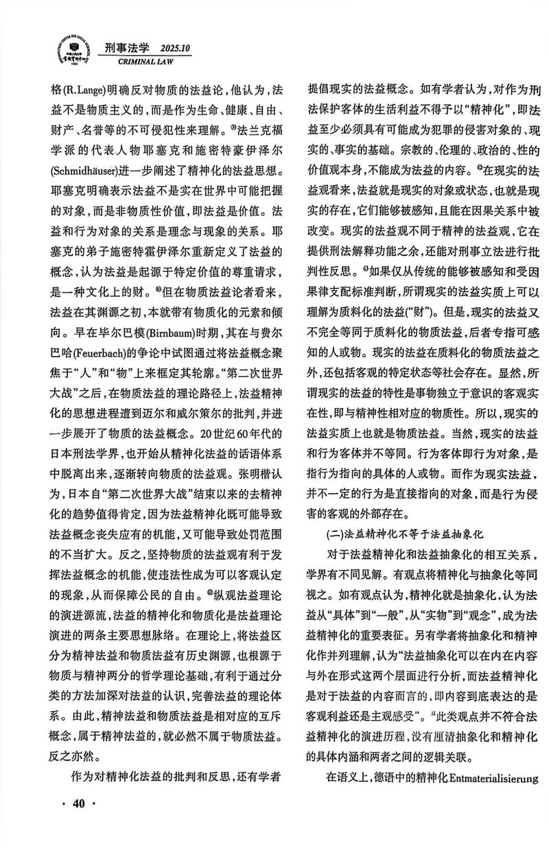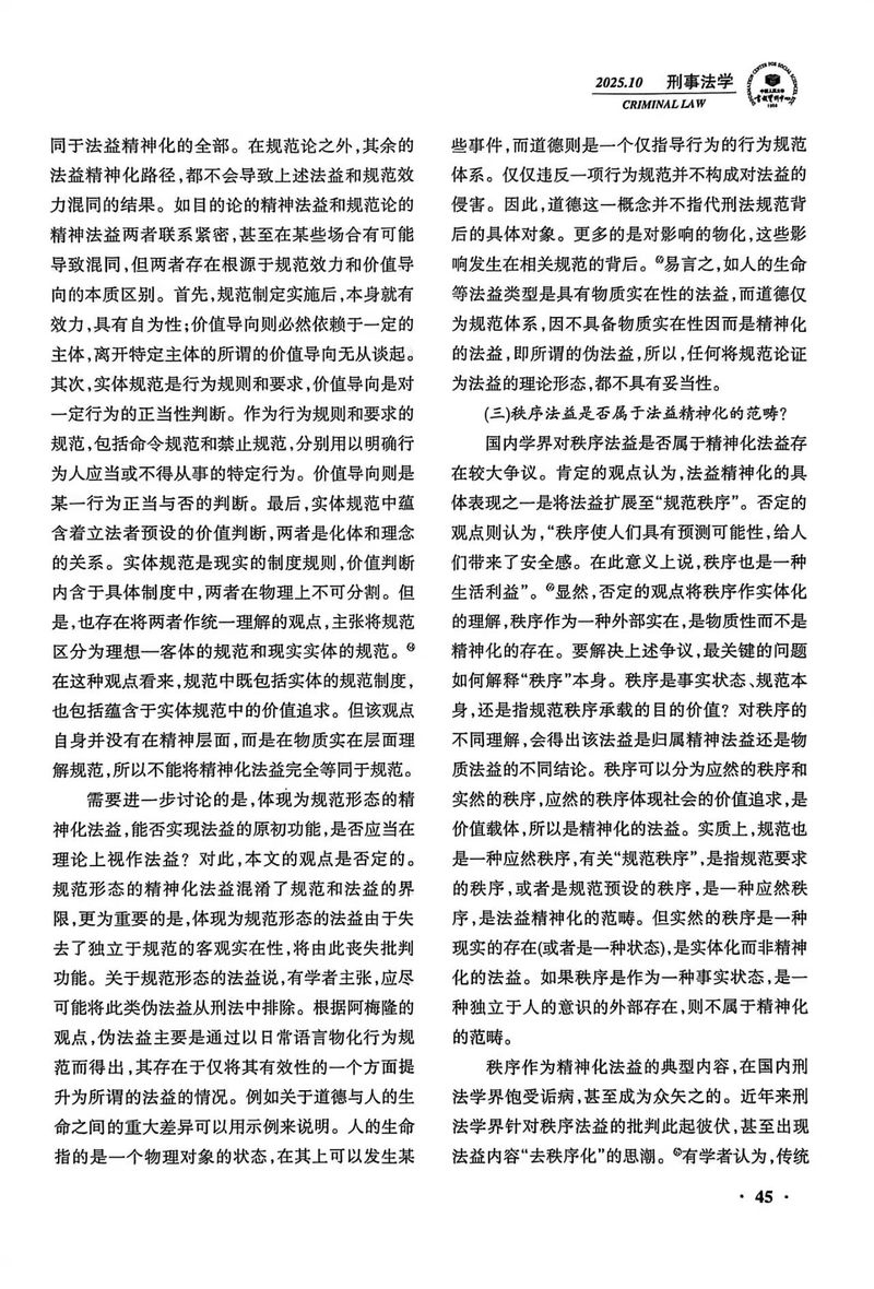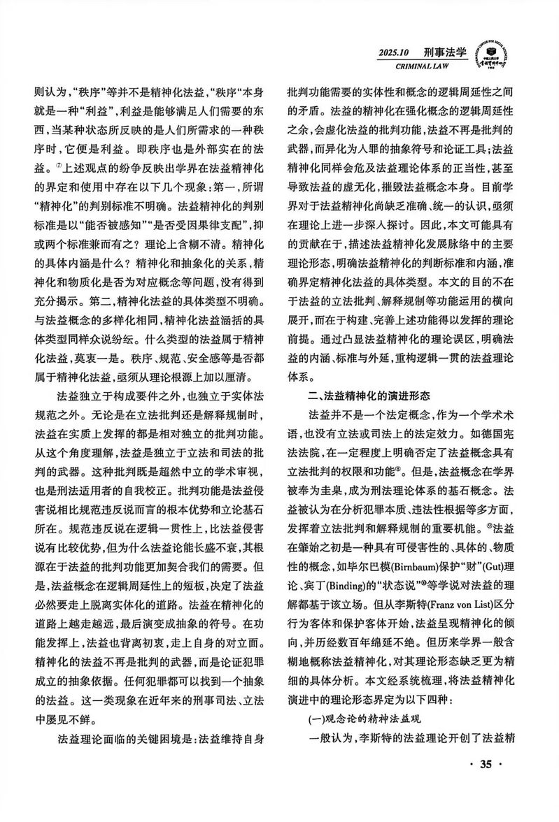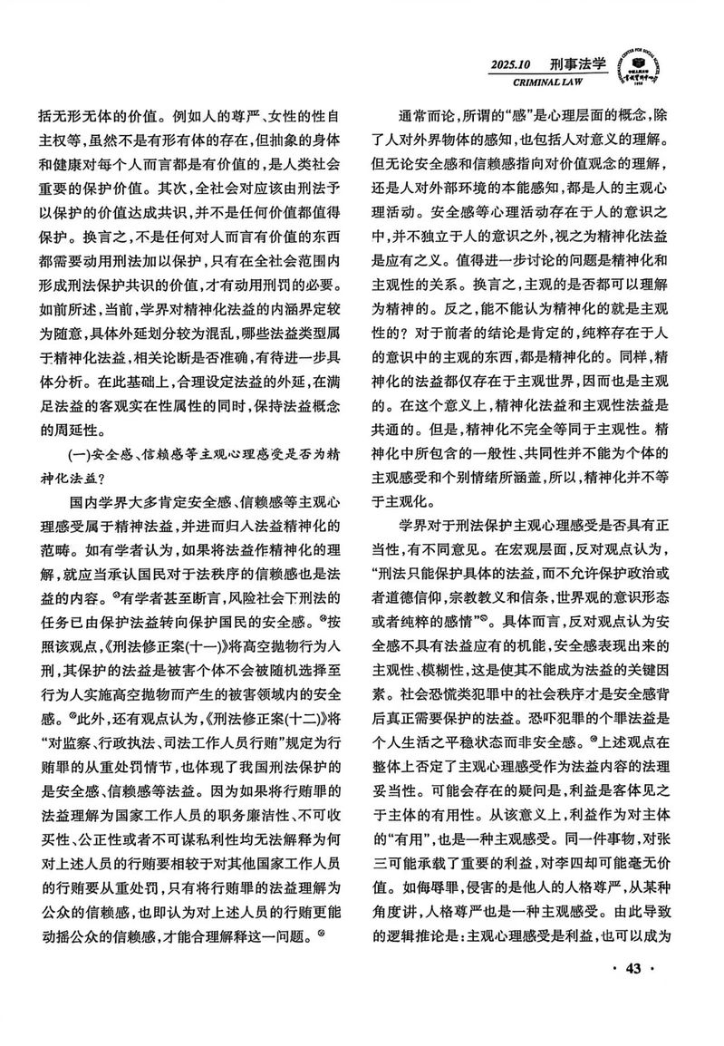 【学术研究】涂龙科:《法益精神化的演进形态、判别标准与类型辨析》获《人大复印报刊资料·刑事法学》2025年第10期转载