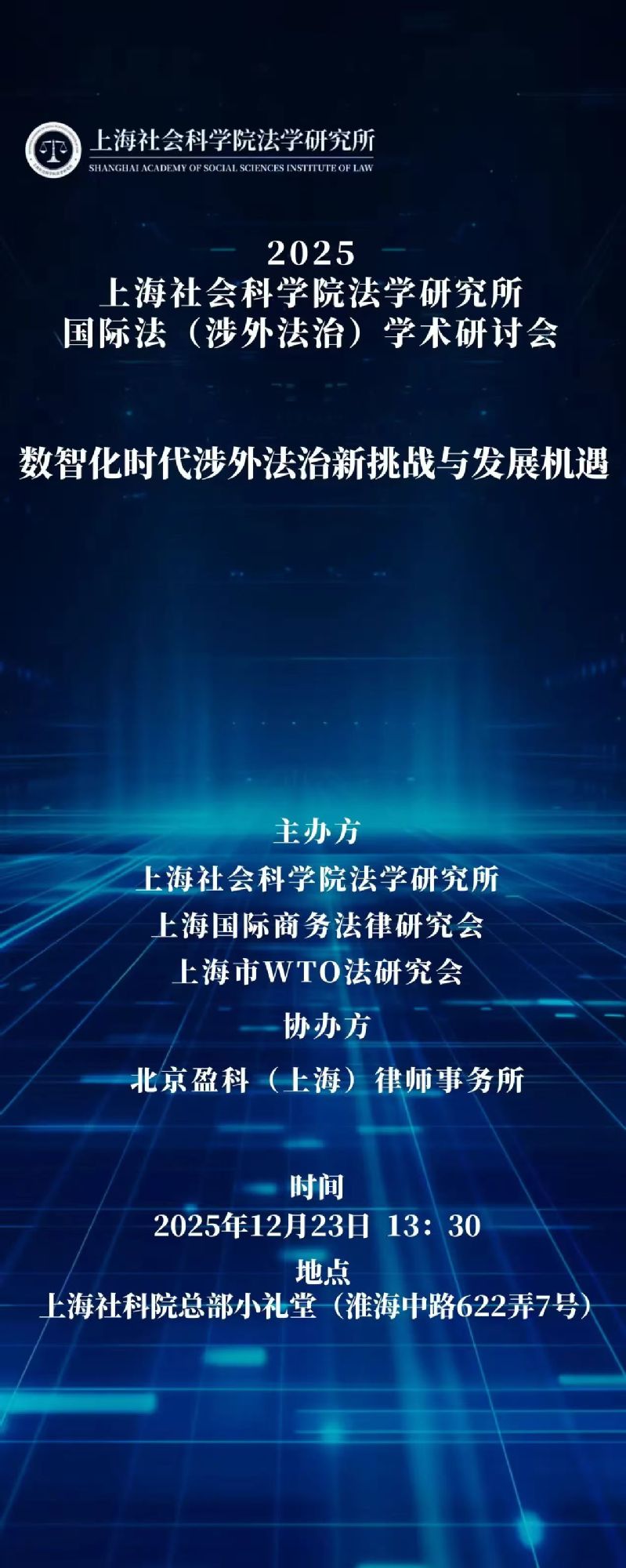 【活动预告】上海社会科学院法学研究所国际法(涉外法治)学术研讨会(2025) “数智化时代涉外法治新挑战与发展机遇”