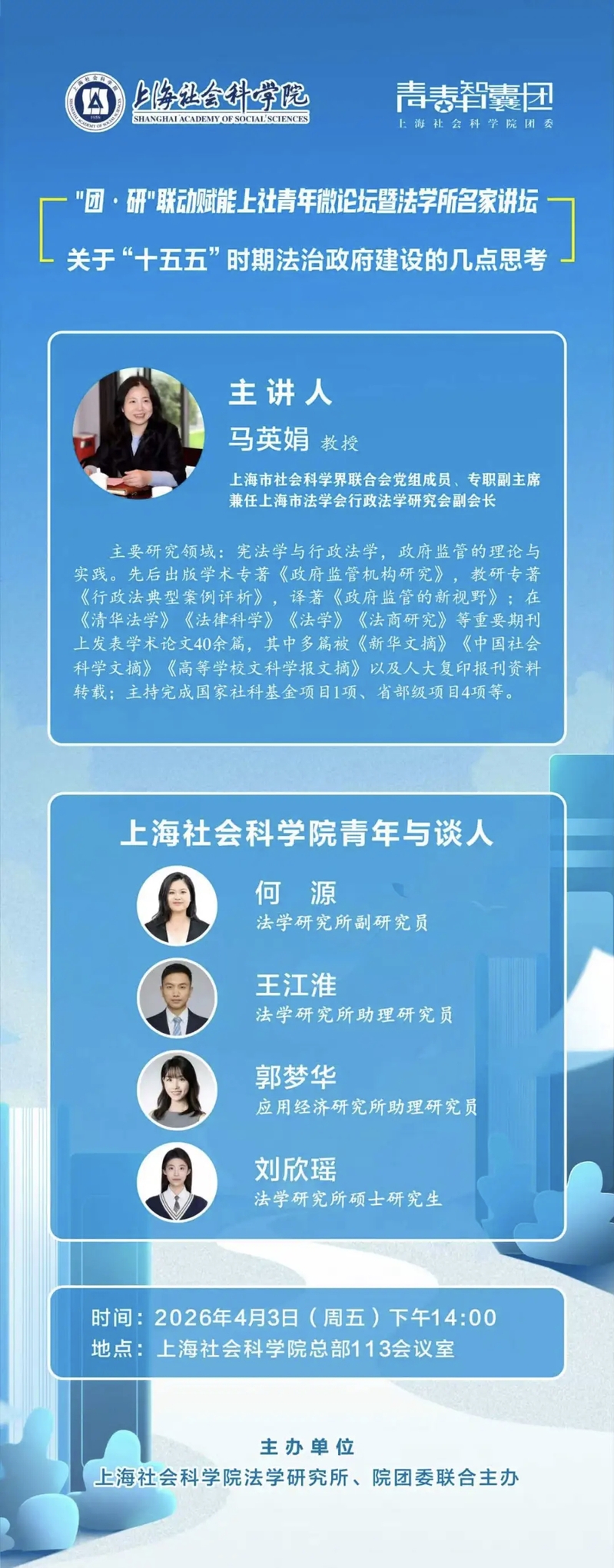 【活动预告】法学所近期学术活动预告(2026年4月3日)
