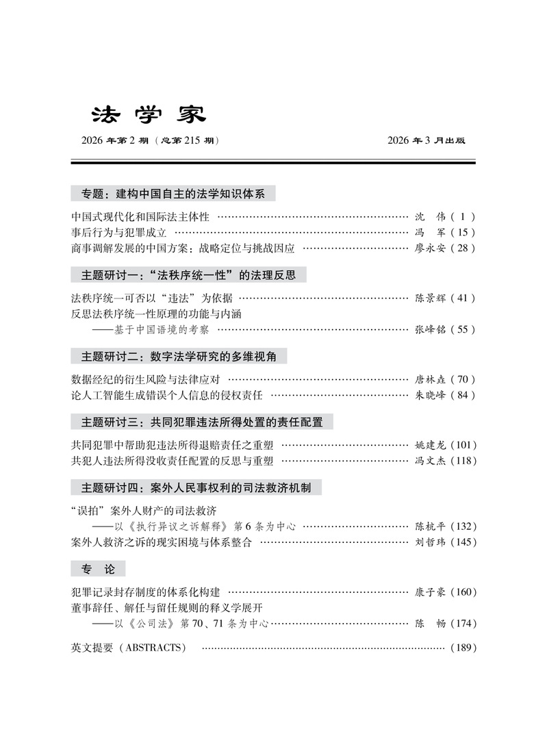 本文刊于《法学家》2026年第2期“主题研讨三:共同犯罪违法所得处置的责任配置”栏目。因篇幅较长,已略去原文注释。