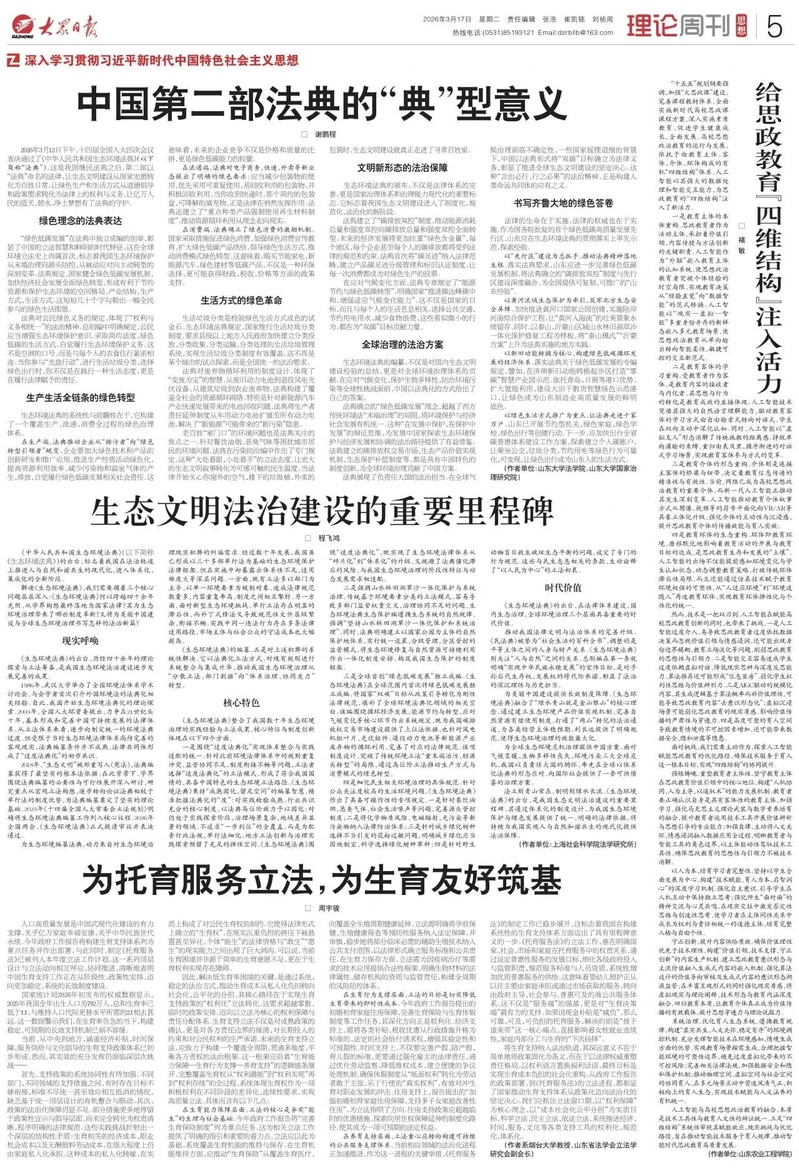 法立则青山常在,制明则绿水长流。《生态环境法典》的出台,是我国生态文明法治建设的重要里程碑。其通过体系化的制度设计,为我国生态环境保护与绿色发展提供了统一、明确的法律依据,将持续为我国实现人与自然和谐共生的现代化提供法治保障。