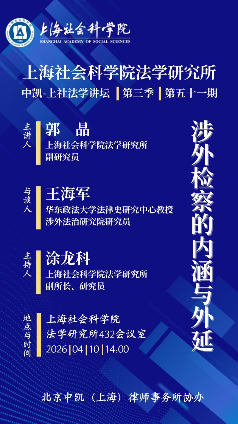 【活动预告】法学所近期学术活动预告(2026年4月10日)